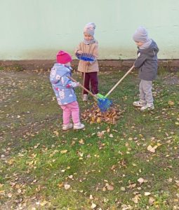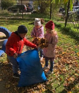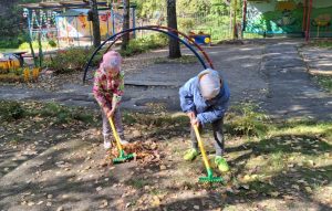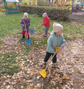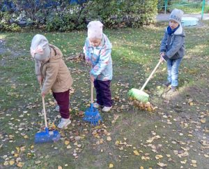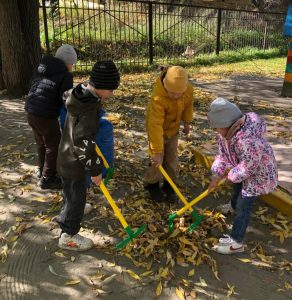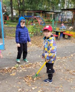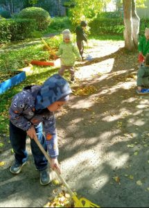 Ребята с удовольствием сгребали листочки в кучи, складывали их в мешки…одним словом – наводили на своих участках порядок. Дети с радостью берутся помогать своим воспитателям и, даже устраивают между собой соревнования!