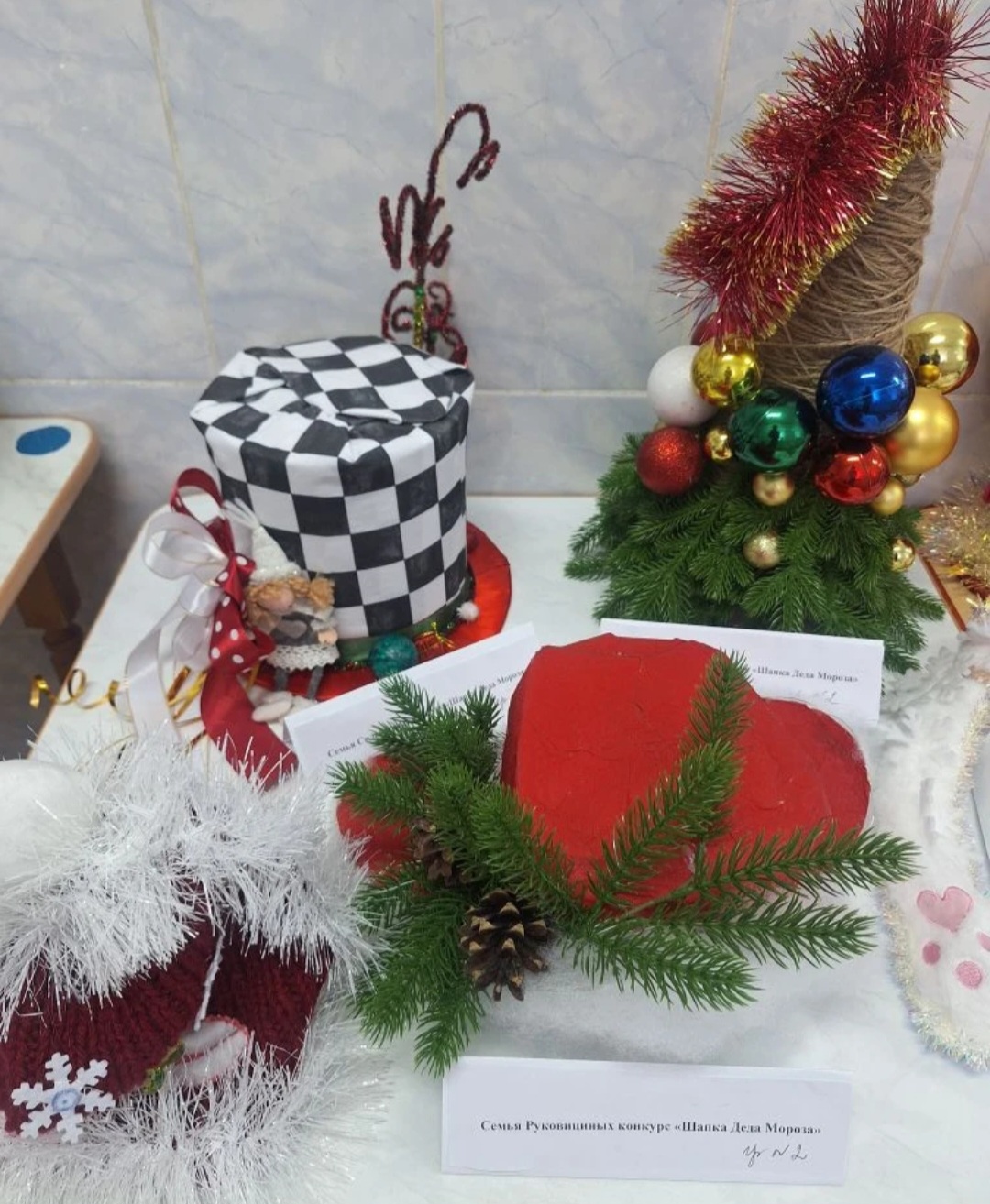 Победителями конкурса стали: номинация «Самая красивая шапка деда Мороза» – семья Соловьевой Алисы, гр.№9; номинация «Классическая шапка деда Мороза» – семья Сартаковой Элины, гр.№9; номинация «Волшебная шапка деда Мороза» – семья Сильянова Максима, гр.№2.