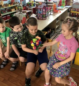 В течение дня дети увлеченно играли в такие игры как: «Я дарю тебе букетик, а ты мне даришь комплиментик», «Вежливо-невежливо», «Доскажи словечко» и др.