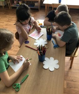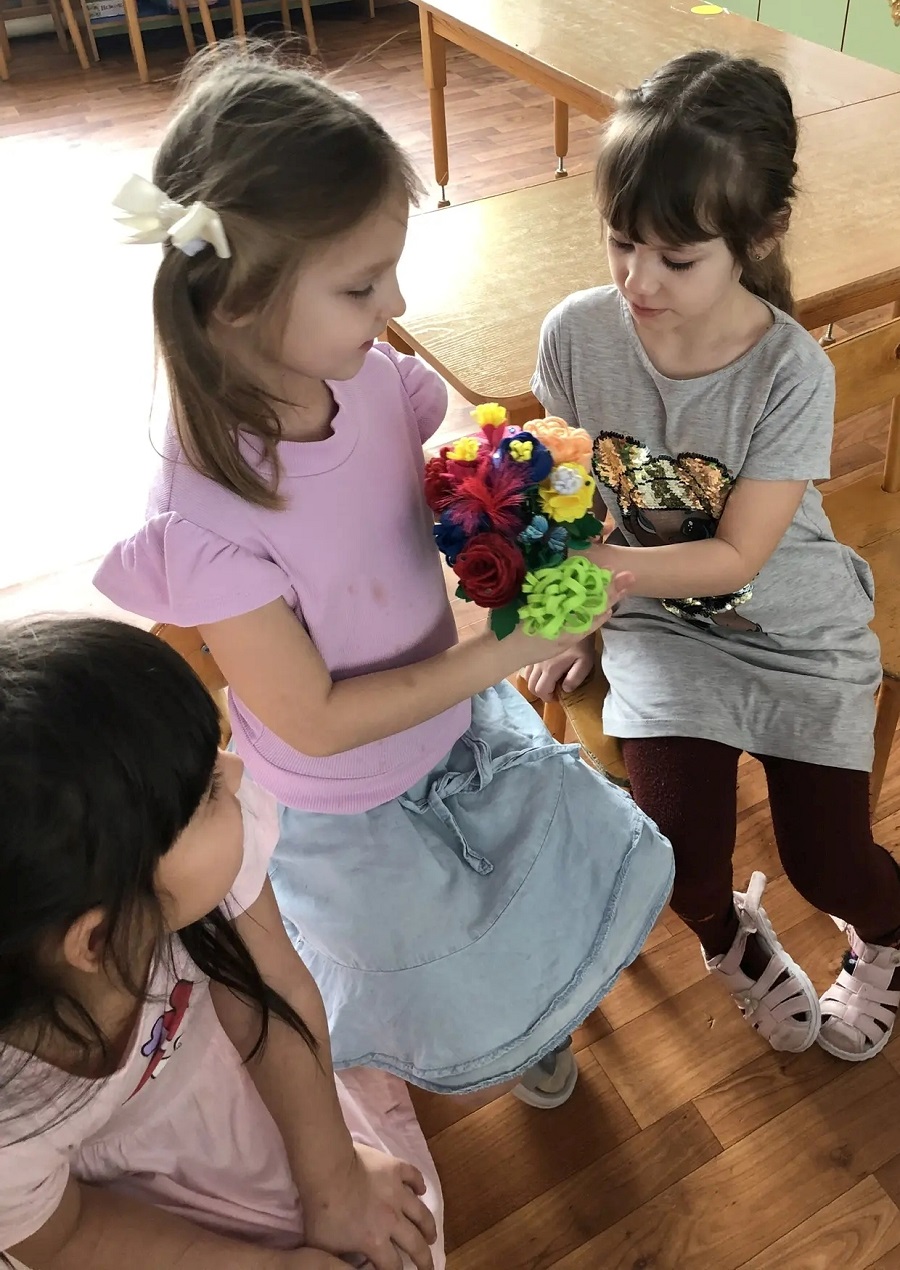 В завершении нашего тематического дня дети с особым трепетом и старанием изготовили ромашки – «спасибушки» своим близким в благодарность за их заботу и любовь.